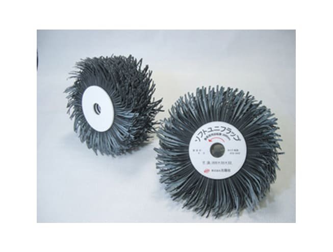 Koyo-Sha Soft Uniflap wheels combine flexible abrasive cloth cut into brush-like slits for easy deburring of 3-D shapes, moulds, fixtures, and uneven surfaces. The detachable shaft version allows quick use with hand tools or pneumatic drills for versatile shop operations.