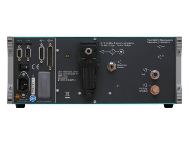 With intuitive menu control, parameter memory for 64 user-defined test programs, and safety/handling features like password-protected user levels, zero-point adjustment, and overpressure monitoring, the CETATEST 715 enhances traceability and repeatability. Its compressed air supply requirements are modest and interfaces include standard I/O plus optional bus/Ethernet.