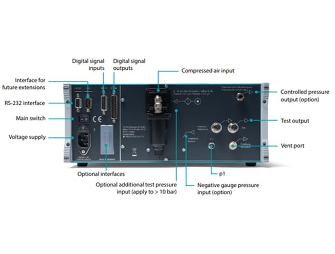 Supports −1 bar up to +20 bar (or more by request) gauge pressure for flexible testing of large leakages.
