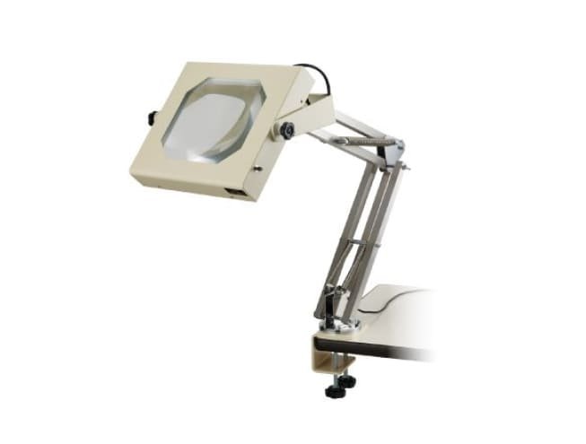 The LED-WIDE-4 LED lighting magnifier from Otsuka Optics offers a large fixed-lens viewing area with bright, diffused LED light. Consuming significantly less power than traditional fluorescent models, it clamps securely to work surfaces and is ideal for inspecting electronics, surface defects, and small components in industrial or laboratory settings.