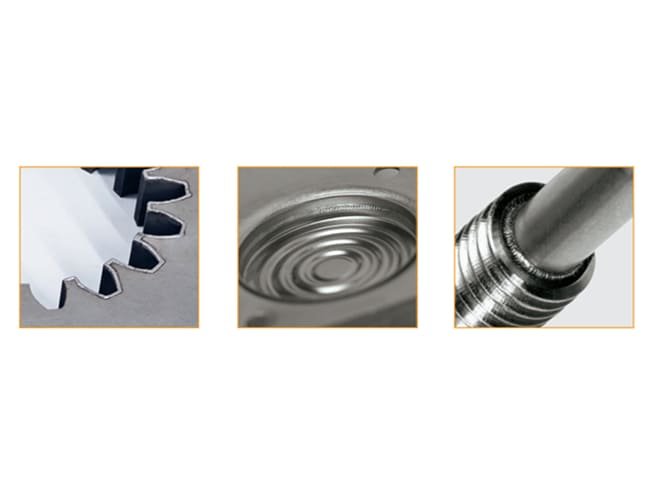 Available with YAG flash lamp or fiber lasers, with power from 100 W to 450 W.